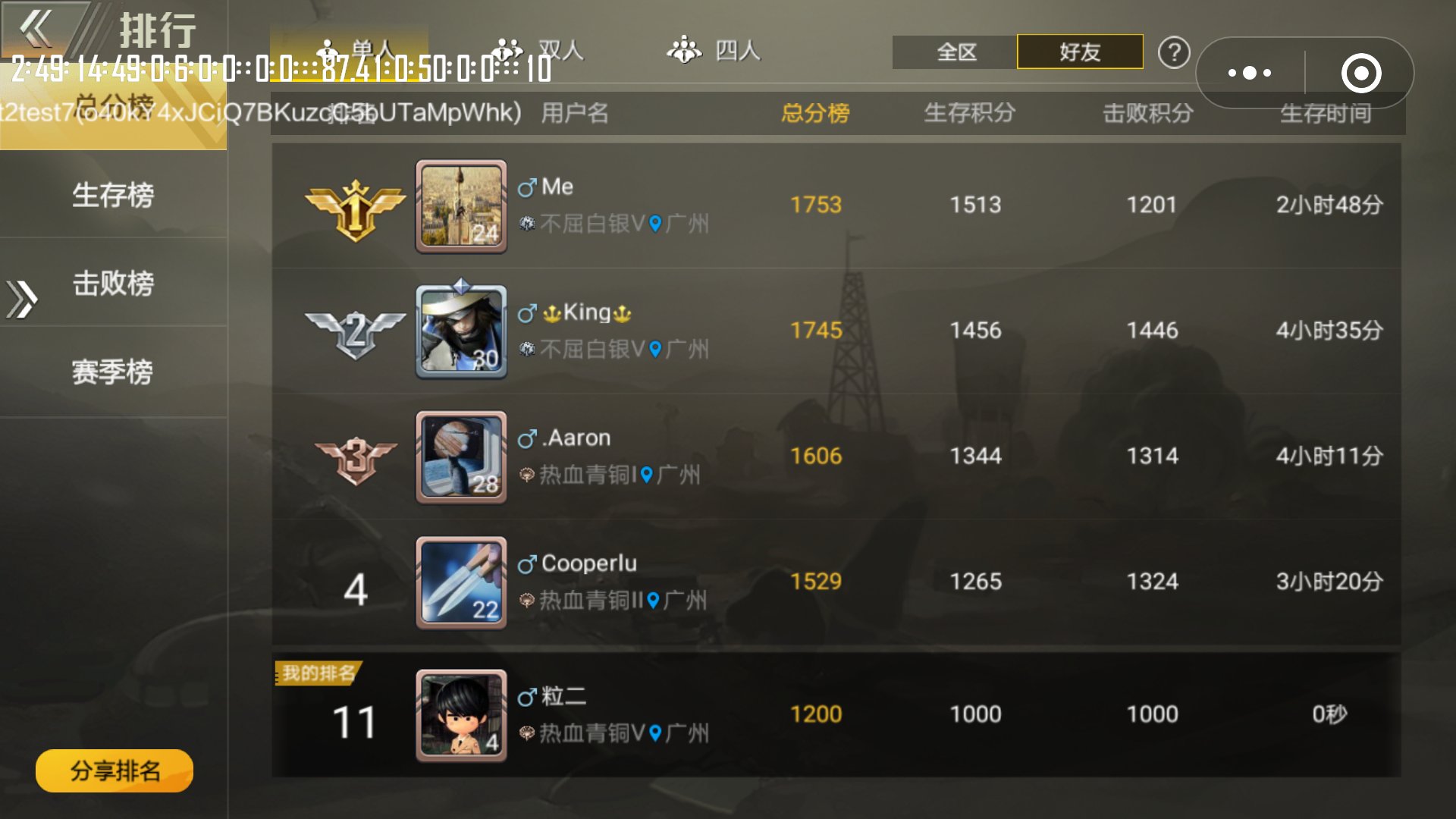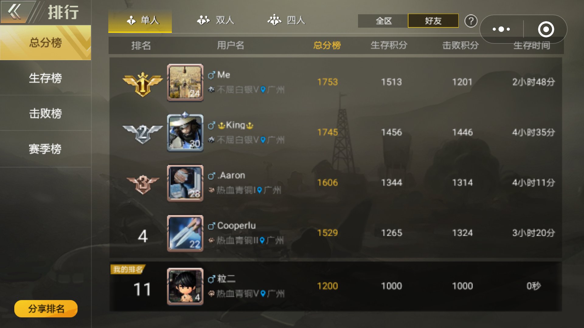正常的排行榜:
